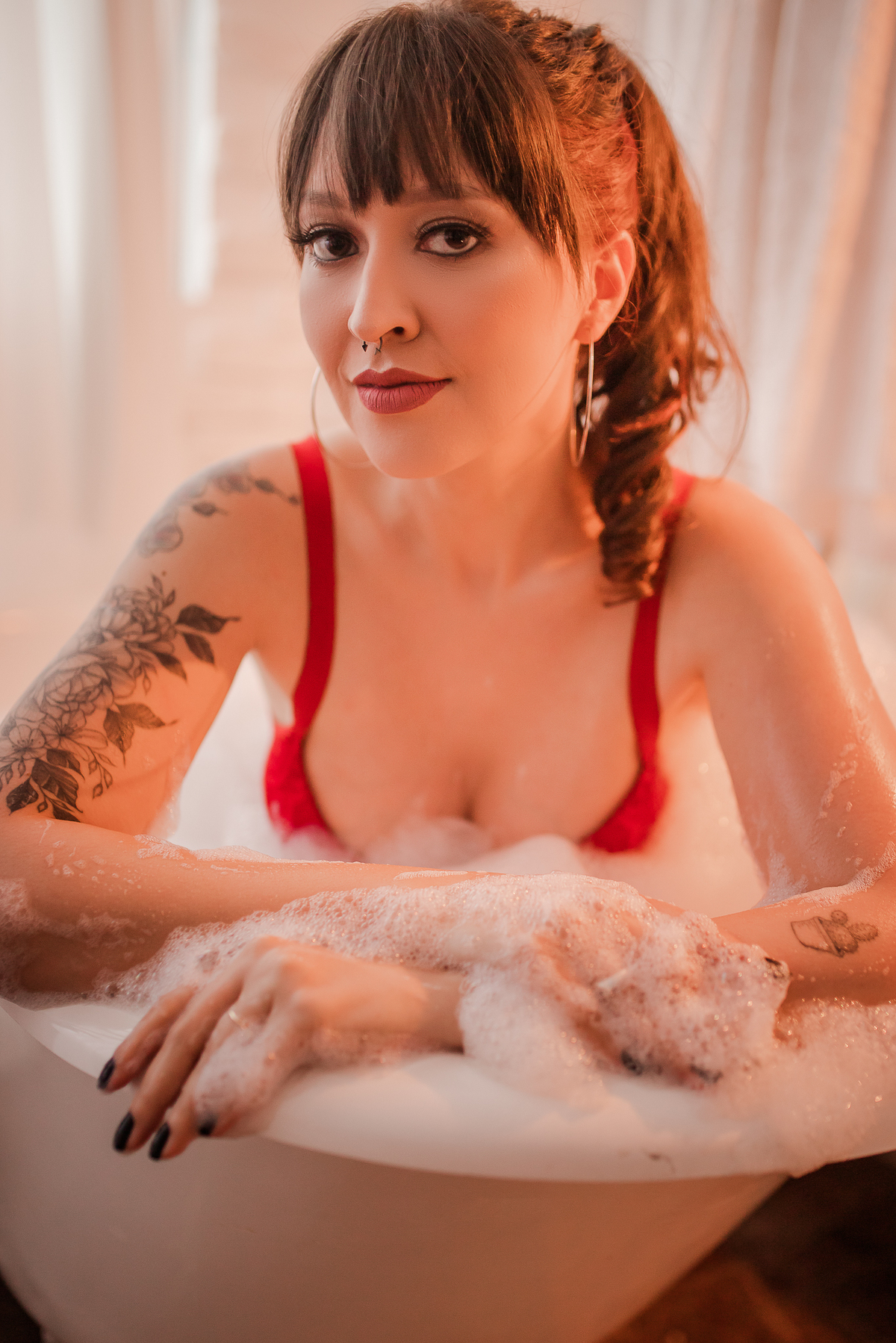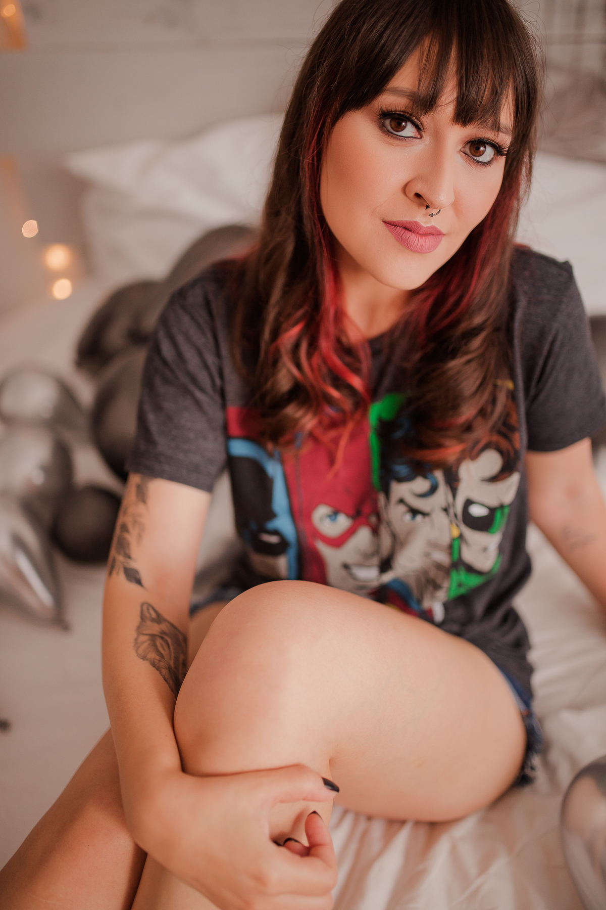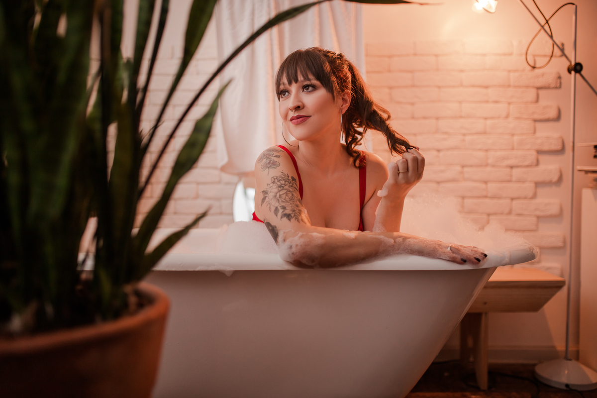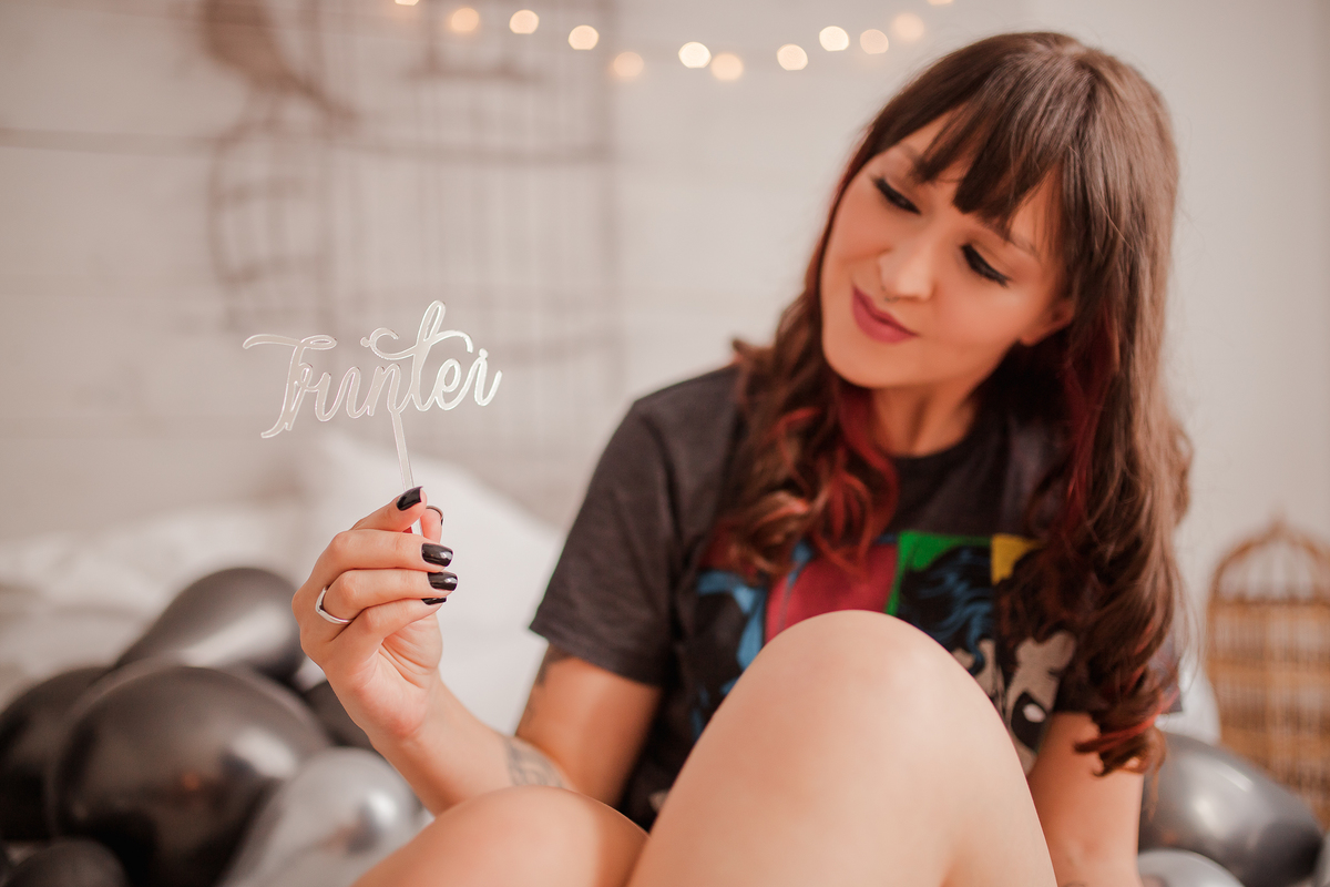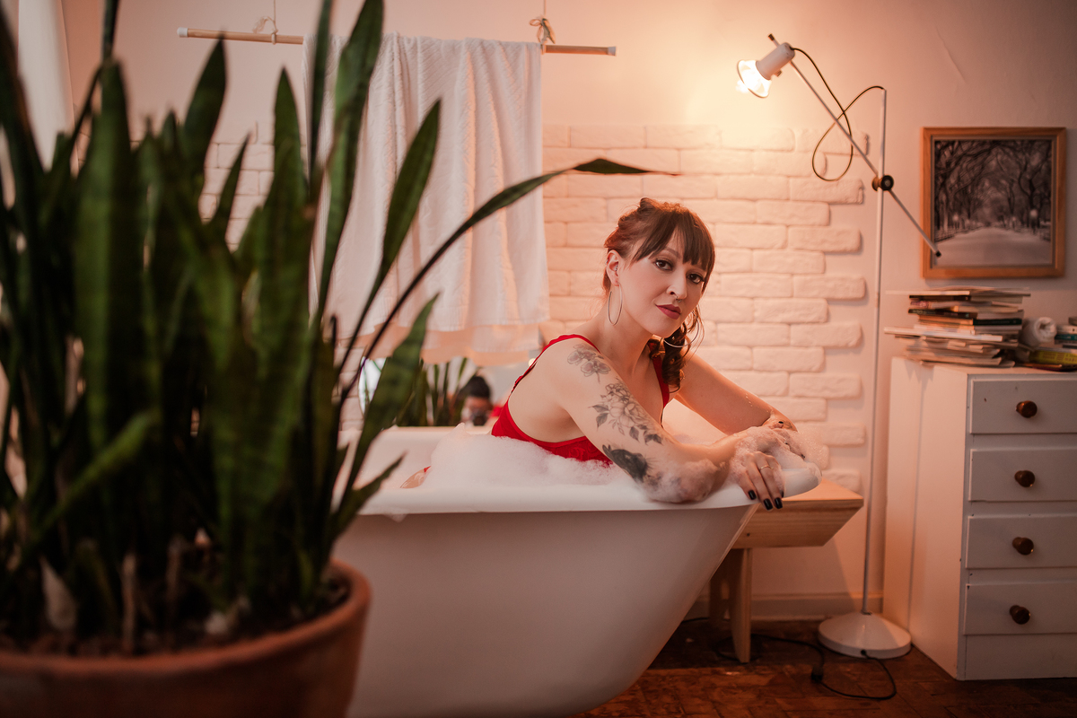 A Jé resolveu celebrar a chegada dos 30 em grande estilo! Resolvemos fazer as fotos para comemorar seu aniversário lá na Ette Estúdio, um home studio lindo, como vários cenários e como uma banheira maravilhosa. Começamos com a decoração especial de balões no quarto, com o look preferido da Jé, a camiseta de super-heróis. Depois, fomos para o estilo mais intimista e fizemos algumas fotos na sala e finalizamos na banheira com direito a espuma e taça de vinho, muito fina né gente!!