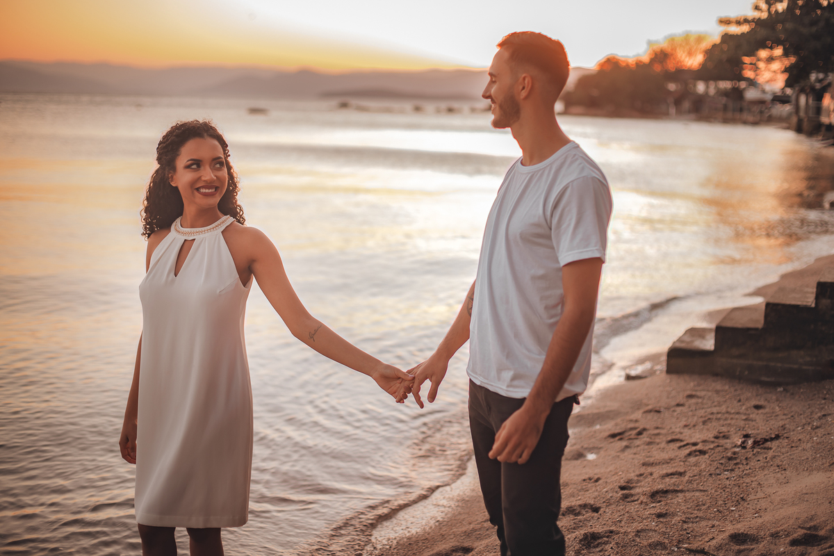 Amei fazer o ensaio desse casal super simpático. Fotos lindas tiradas na praia de Santo Antônio de Lisboa, ao pôr do sol. Quer mais romance do que isso?